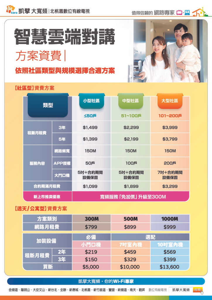 Facebook Line Phone Mail-bulk 凱擘大寬頻北桃園有線電視手機就是對講機!遠端開門好便利! ※ 住戶出門在外,重要訪客訊息不漏接! 智能遠端開門,社區管理省心又便捷! ※ 專業一站式團隊規劃服務,低成本智慧轉型、無痛升級,售後維修有保障 有線電視、光纖網路、數位監控、企業整合、雲端網路電話業務服務電話 0980-529-891 Contact rex.chiang@nty.kbro.com.tw 桃園區大興西路二段65號5樓 Message Us Facebook Line Phone Mail-bulk 【北桃園有線電視】凱擘大寬頻經營區域包括桃園市、八德區、龜山區、蘆竹區、大園區 申裝有線電視、Wi-Fi網路、數位監控【桃園、龜山、八德、大園、蘆竹】 Call 0980529891 個人資料保護管理政策 隱私權政策 資通安全管理政策